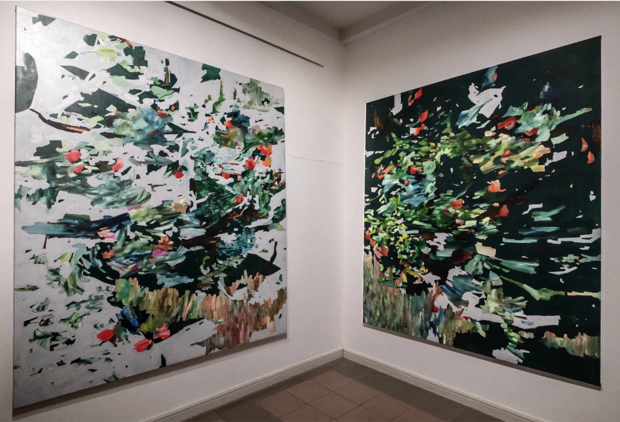 Die gezeigten Werke sind im Rahmen eines dreimonatigen Stiftung-Bösenberg-Stipendiums entstanden. In dieser Zeit setzte sich die japanische Künstlerin intensiv mit der Verbindung digitaler Technologien und klassischer Ölmalerei auseinander. Das Ergebnis ist eine beeindruckende Serie großformatiger Gemälde, deren Bildwelten aus digitalen 3D-Scans generiert und in malerische Kompositionen überführt wurden.